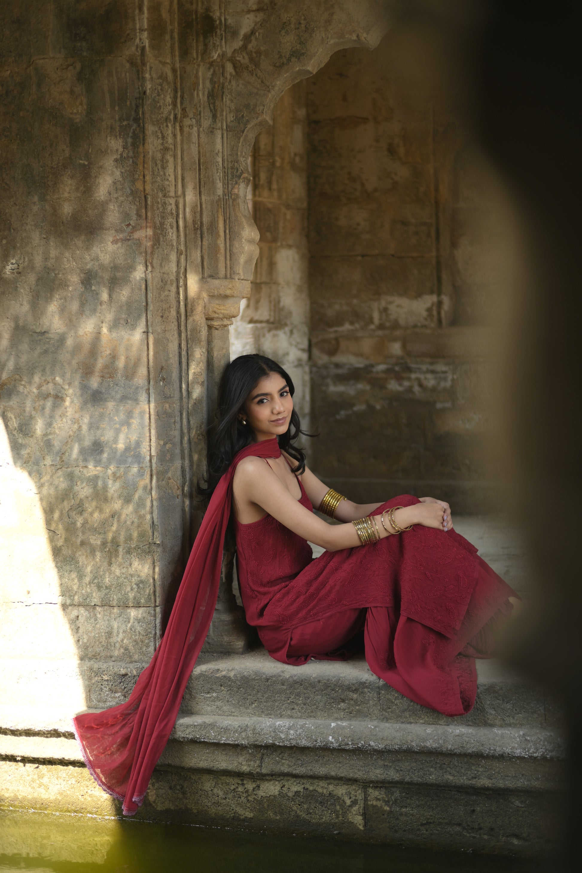 Intricately hand-embroidered with fine chikankari detailing, the Iktara Set embodies understated luxury.